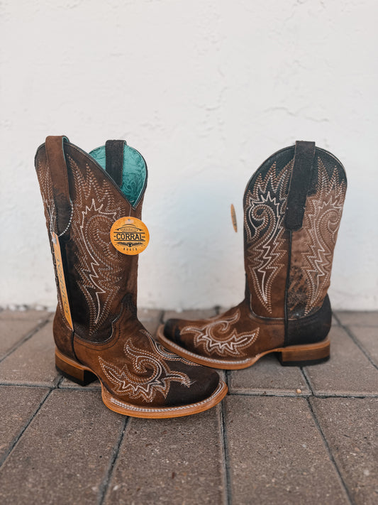 Corral Brown Flames Lamb Embroidery Square Toe Boot