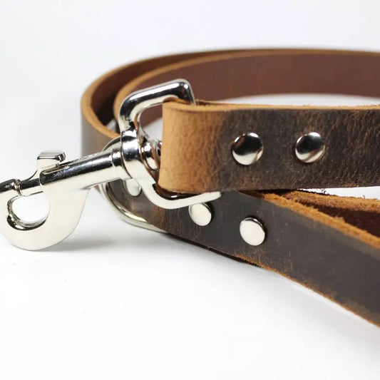 Dark Brown Thick Leather Dog Leash