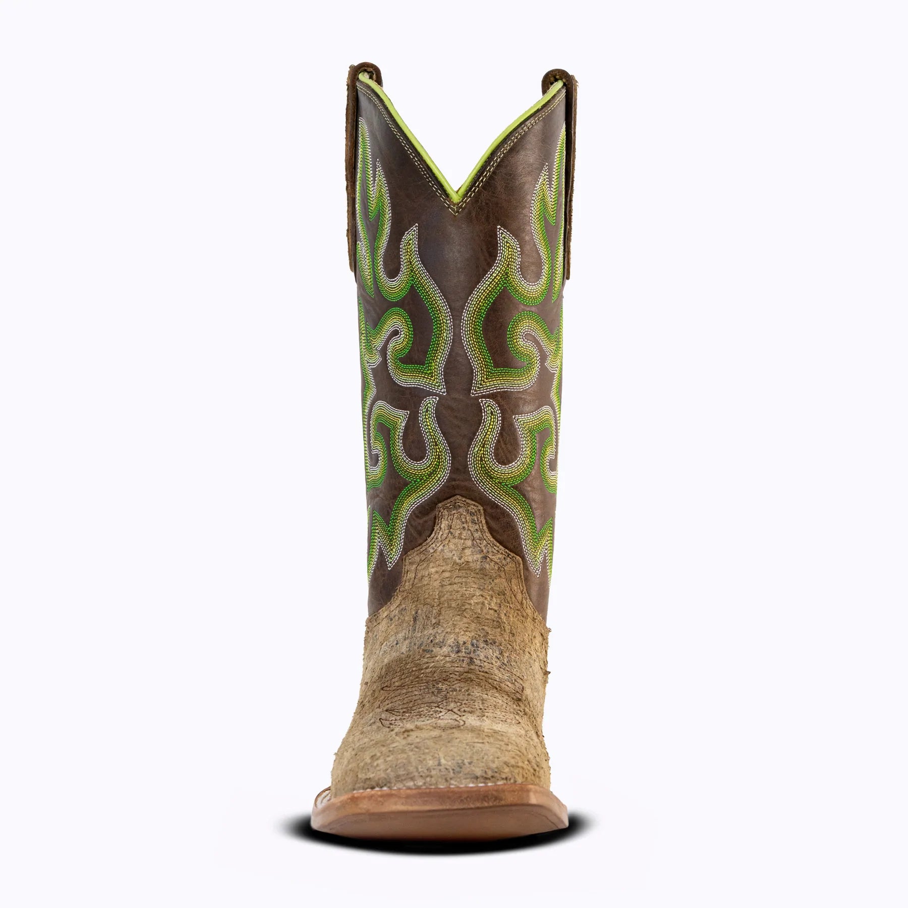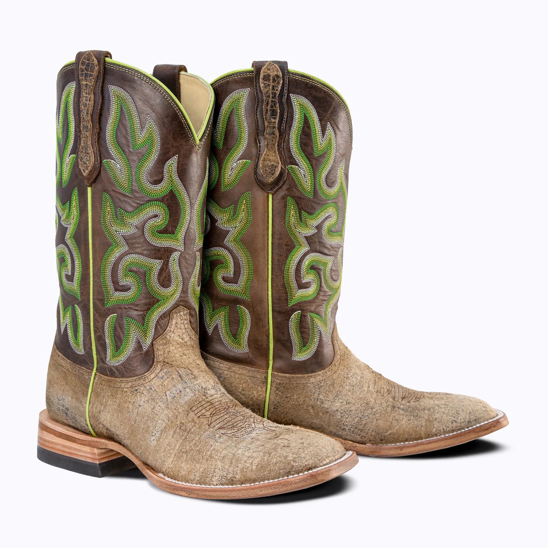 This boot features a light, caiman influenced texture. No two boots will be the same and over time this leather will patina well.