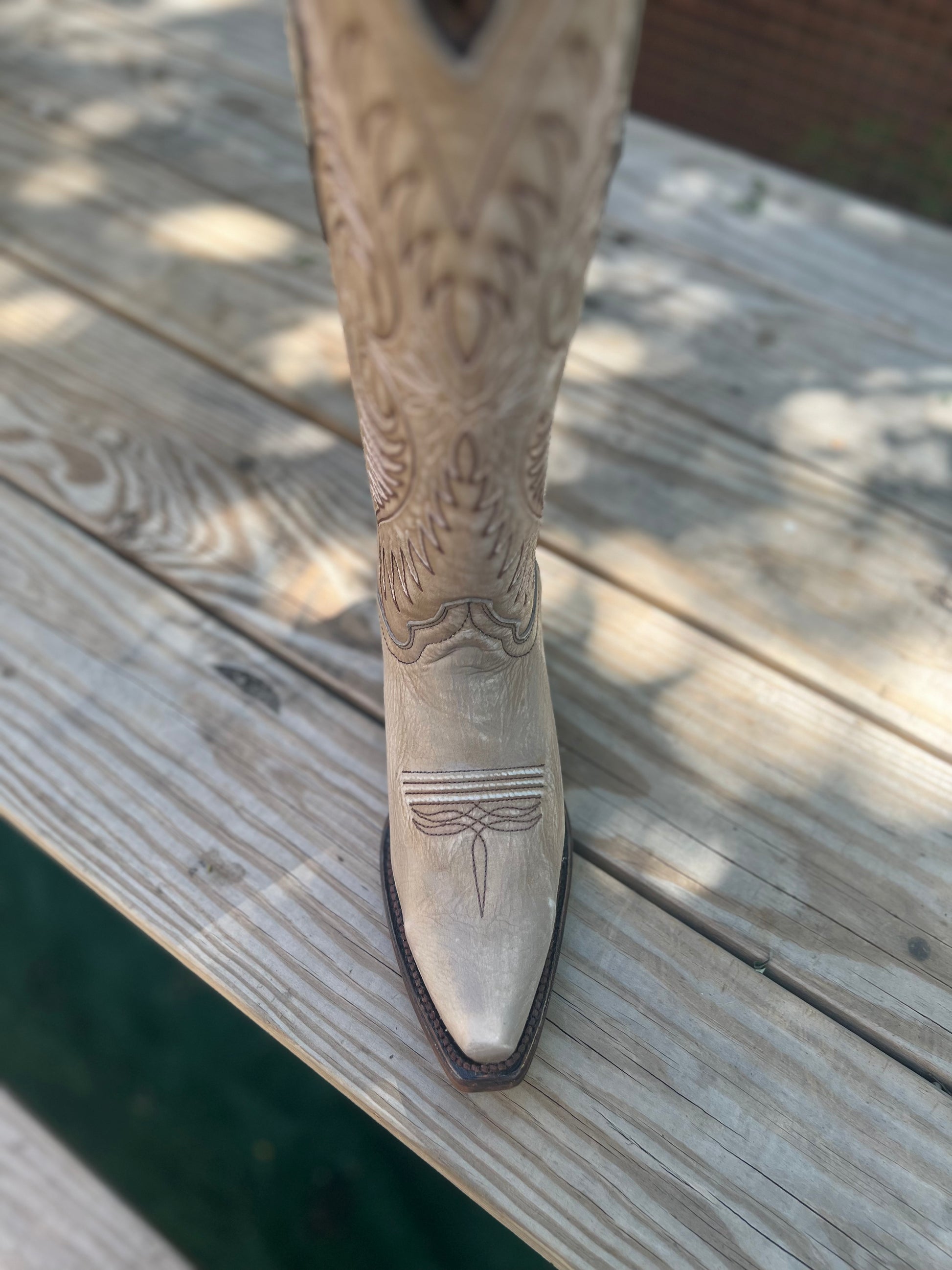 Elevate your style with our Circle G Sand Cowhide Embroidery Boots. Handcrafted with luxurious sand-colored cowhide, these boots are the epitome of sophistication. The perfect blend of comfort and elegance, these boots will elevate any outfit. Make a statement with our exclusive Circle G boots.