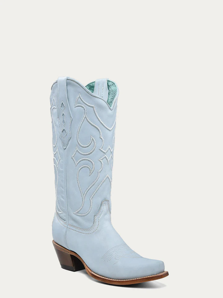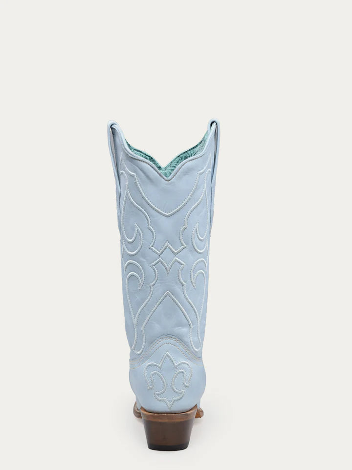 Elegant, sleek, and beautiful. This is the ideal blue hue boot with its simple embroidery patterned design that highlights its tall silhouette.