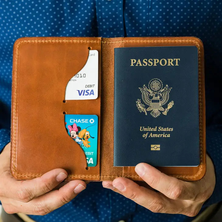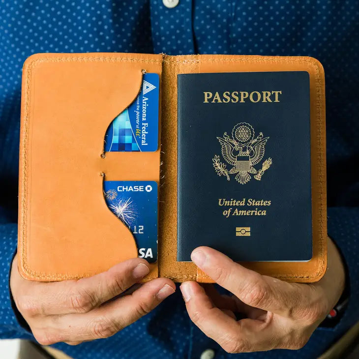 If you're looking to travel in style and have a place to stow credits cards, cash, and other important travel papers -- this is your passport cover. It's handcrafted in San Tan Valley, AZ with authentic full grain leather -- it's going to last forever and age beautifully.