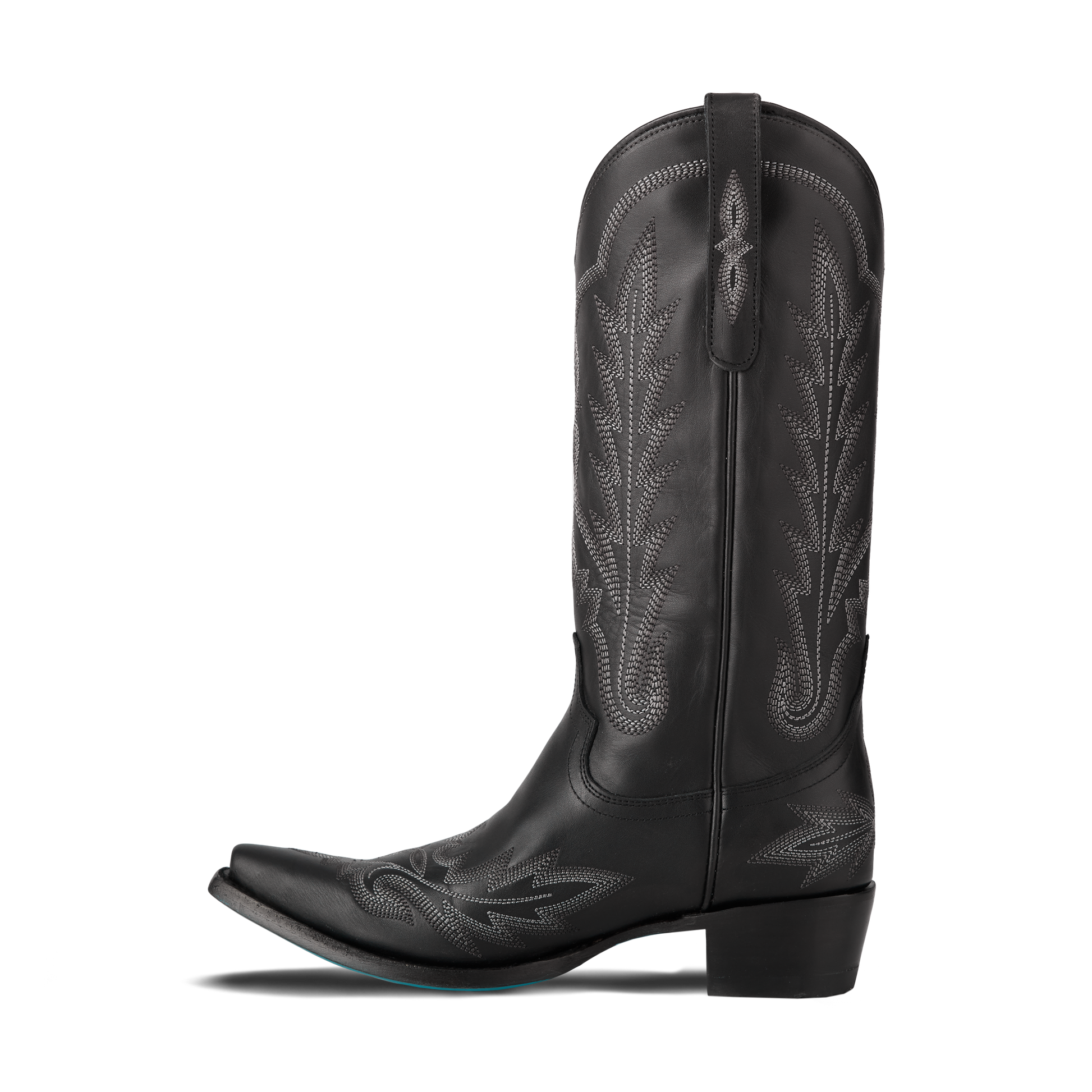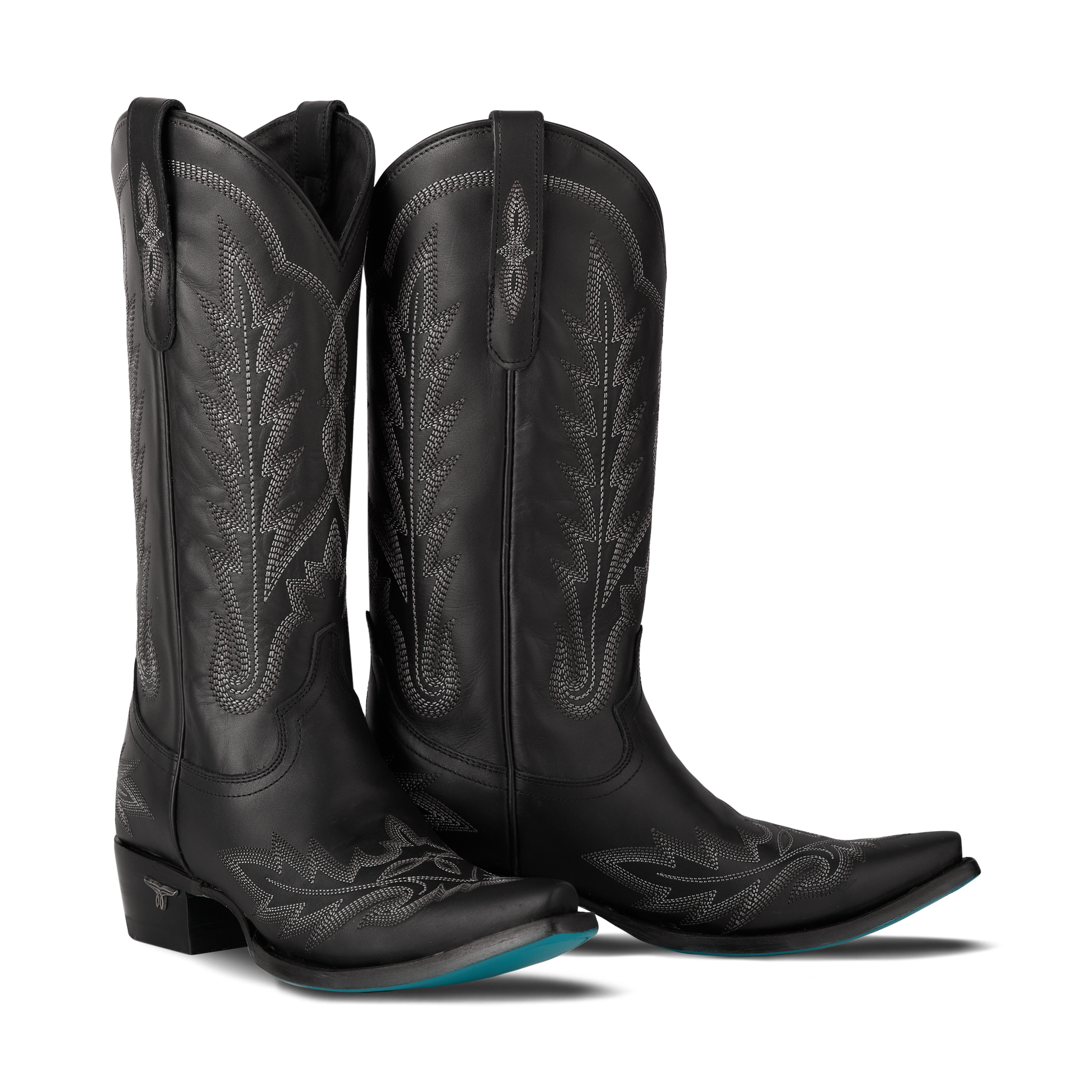Sleek, powerful, and endlessly versatile, the Lexington in Jet Black leather is a must-have women’s cowboy boot. Clean lines and subtle flame-stitch embroidery give this classic silhouette a modern edge.