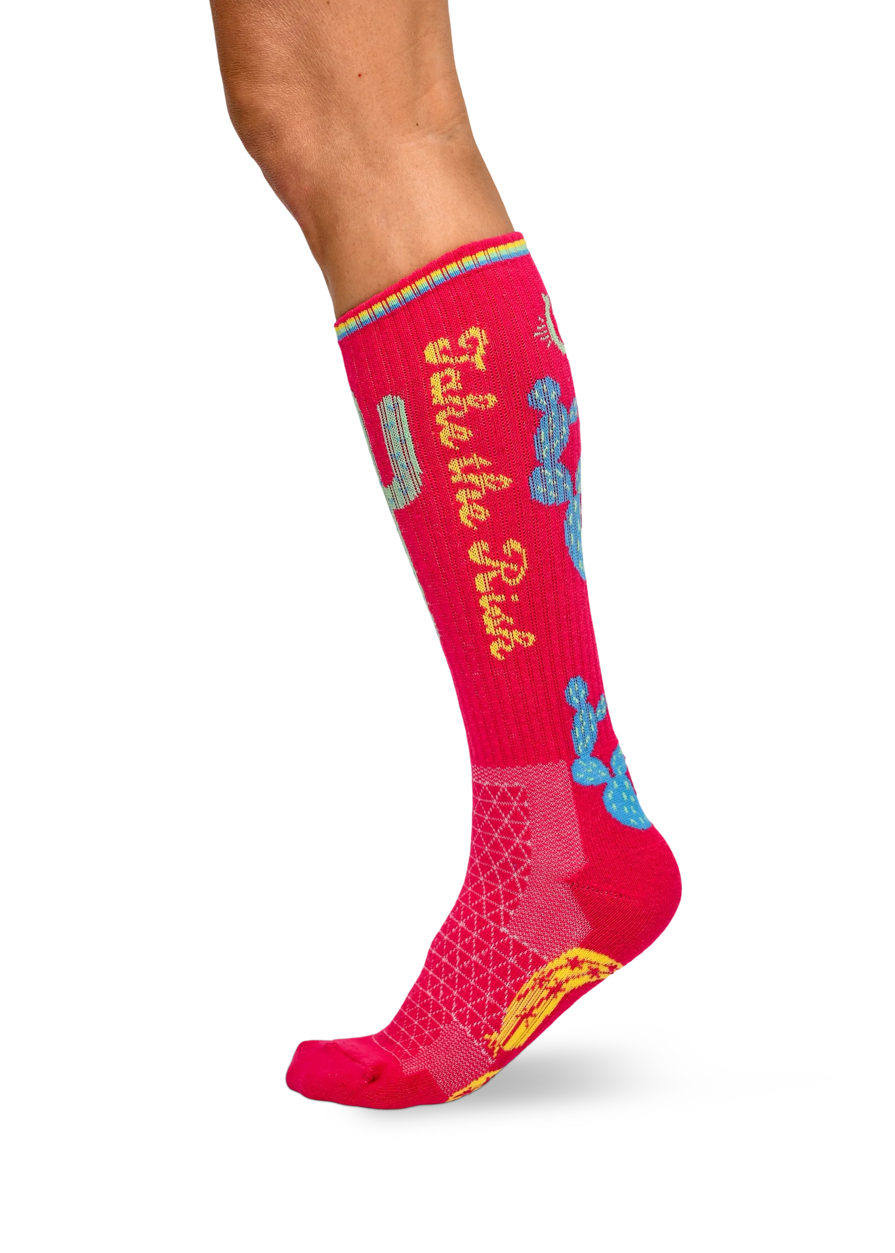 Under the creative vision of head cowgirl Lorinda Van Newkirk, Lucky Chuck® Performance Socks deliver on both style and functionality. These riding essentials are tall enough to protect your calves, stay up all day, and never cut off circulation. Plus, they soften with every wash without wearing out—giving you even more chances to rock your lucky socks every day.