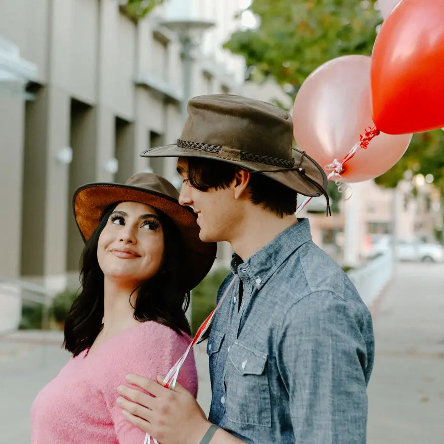 Crushable Leather Outback Hat combines rugged style with convenient packability. Made from lightweight cowhide leather, this medium-brim hat features a braided leather band and chin cord, perfect for men seeking durable sun protection that’s easy to take on the go.
