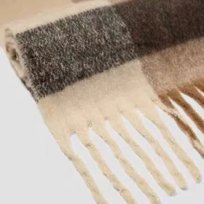 Wrap yourself in cozy vibes with this patchwork khaki tassel scarf—your new favorite layering piece. Crafted for comfort with thermal properties to keep you warm when the chill sets in, this long scarf drapes beautifully and adds instant character to any outfit.