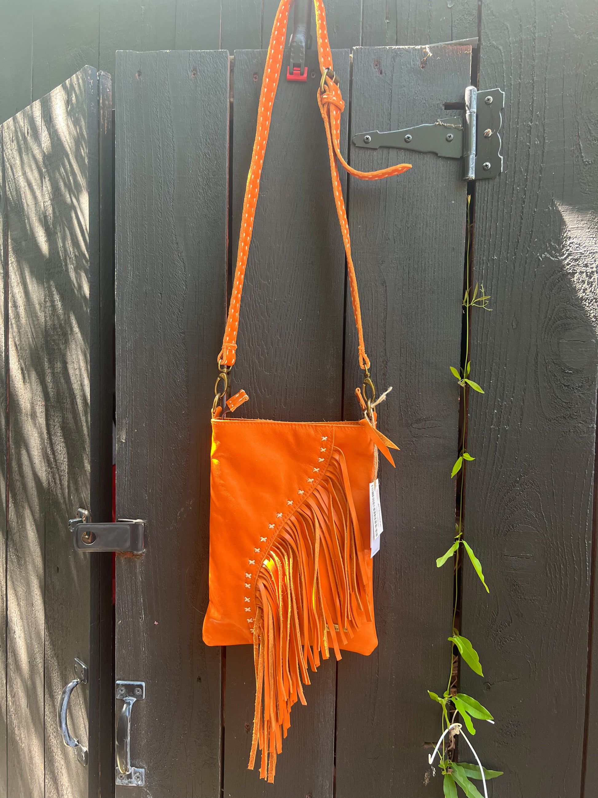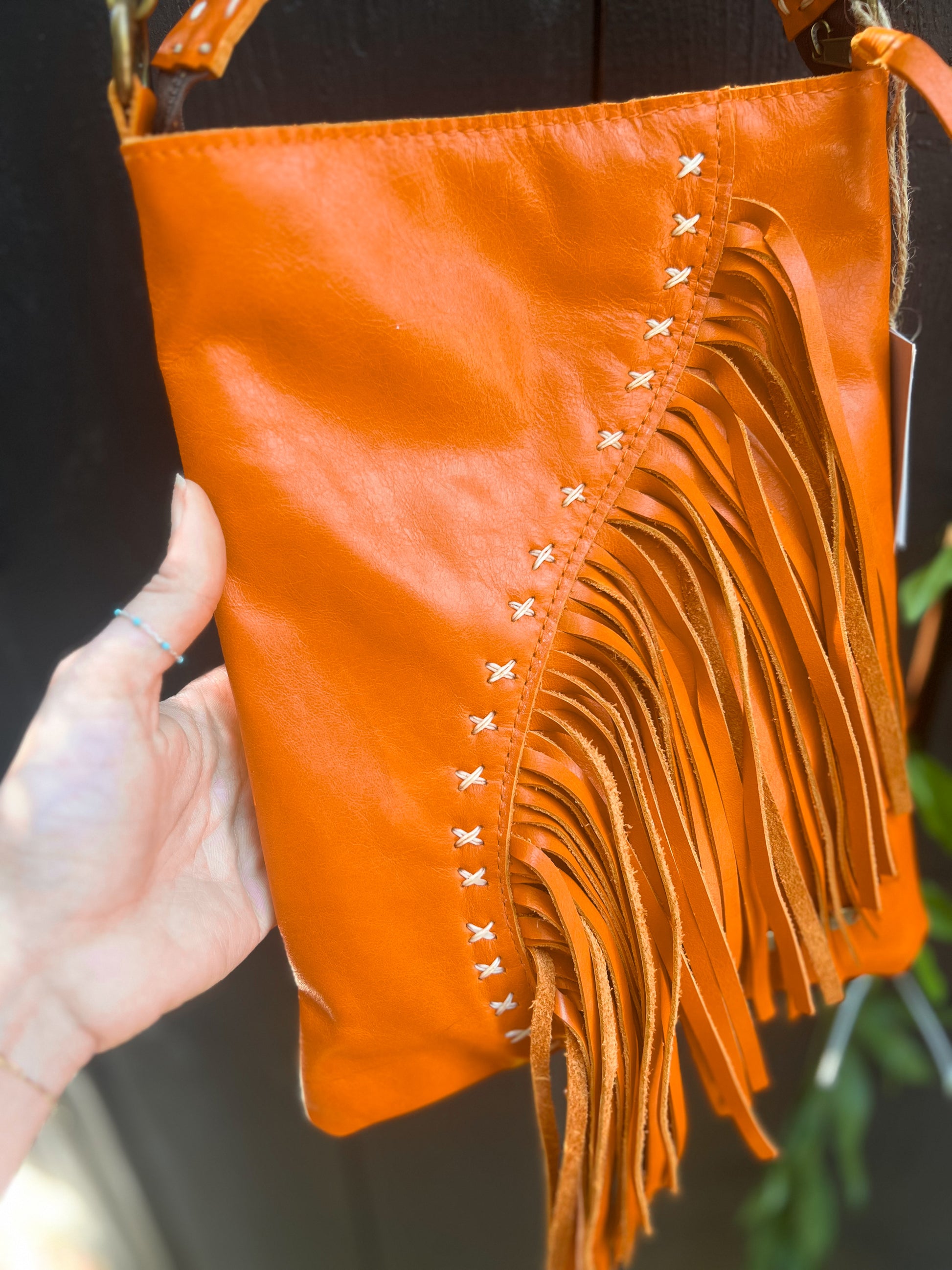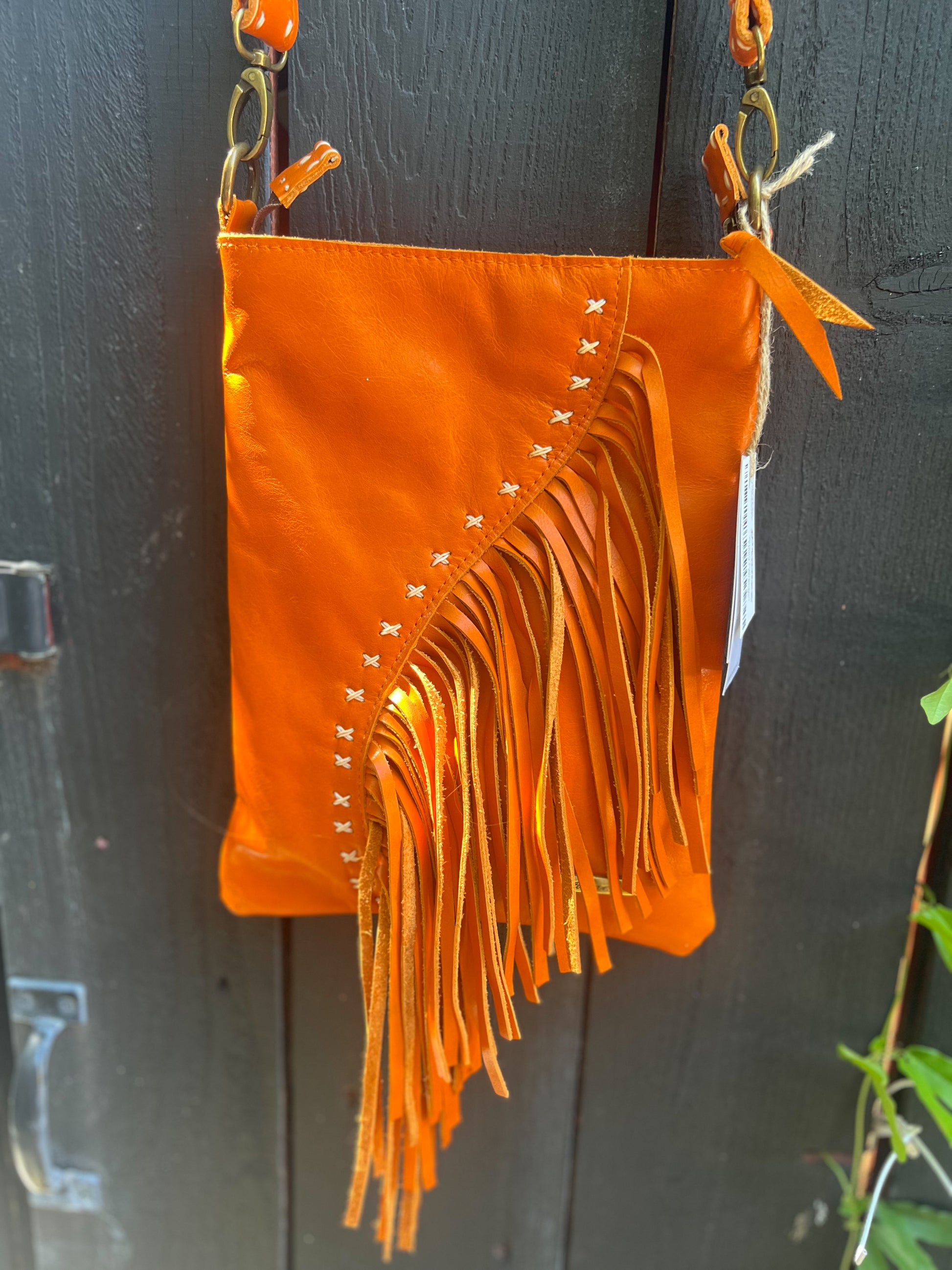 Pranee Austin "Holly" Fringe Crossbody Purse in Orange