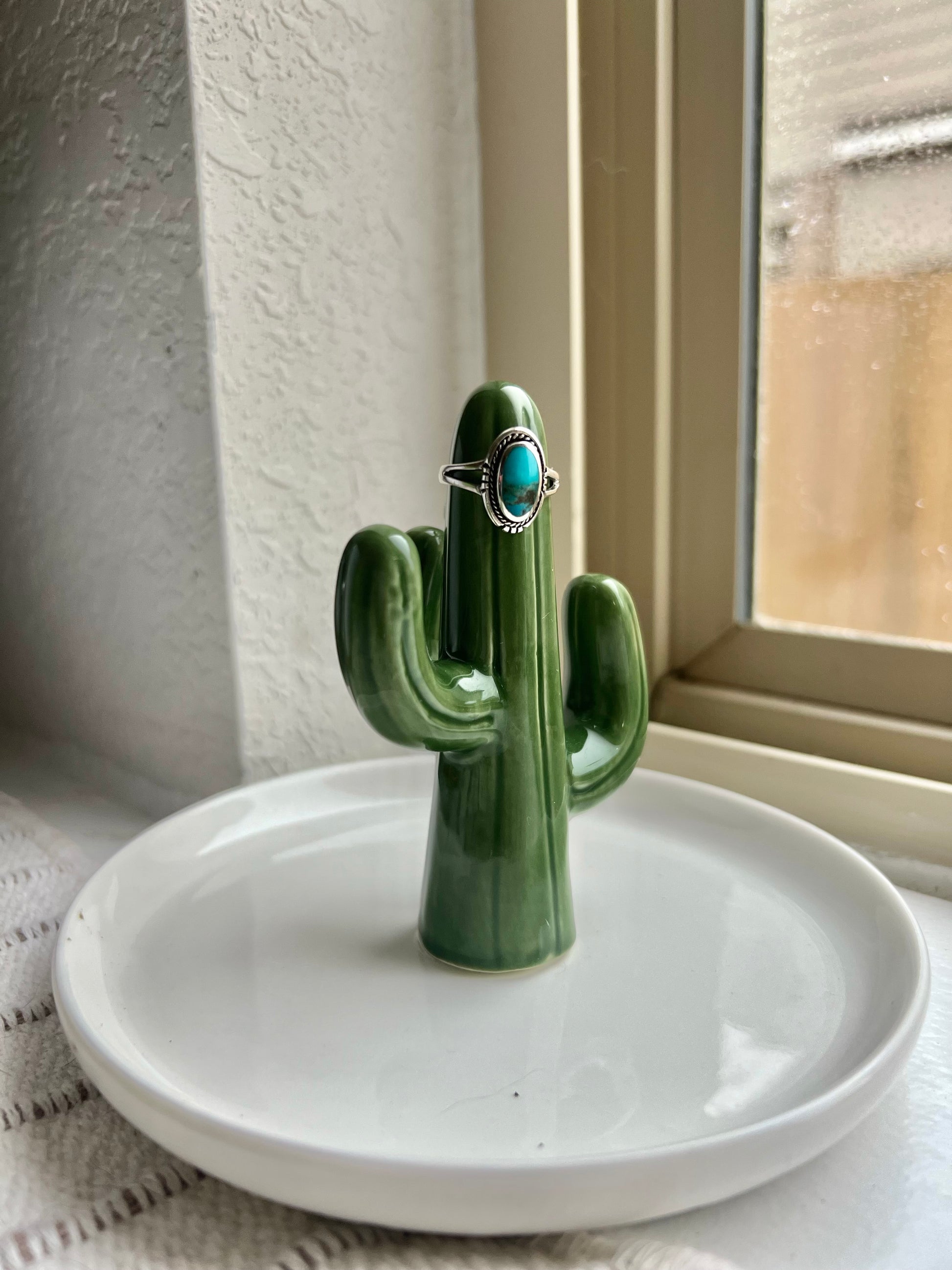 Sterling Silver Small Oval Turquoise Ring - Size 6