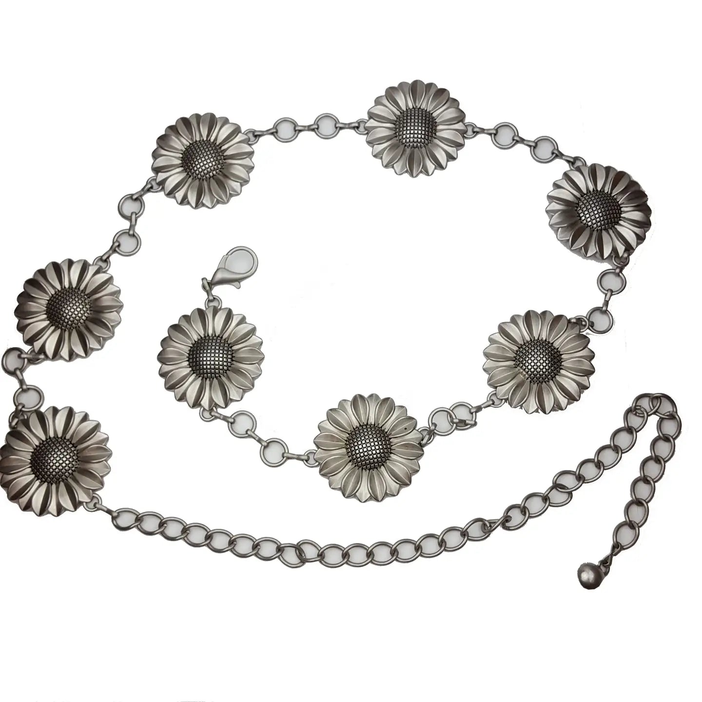 Elevate your style with our Sunflower Metal Chain Belt. This luxurious accessory adds a touch of fun to any outfit. Crafted with intricate sunflower details, it radiates beauty and sophistication. Embrace the exclusive charm of this must-have piece.