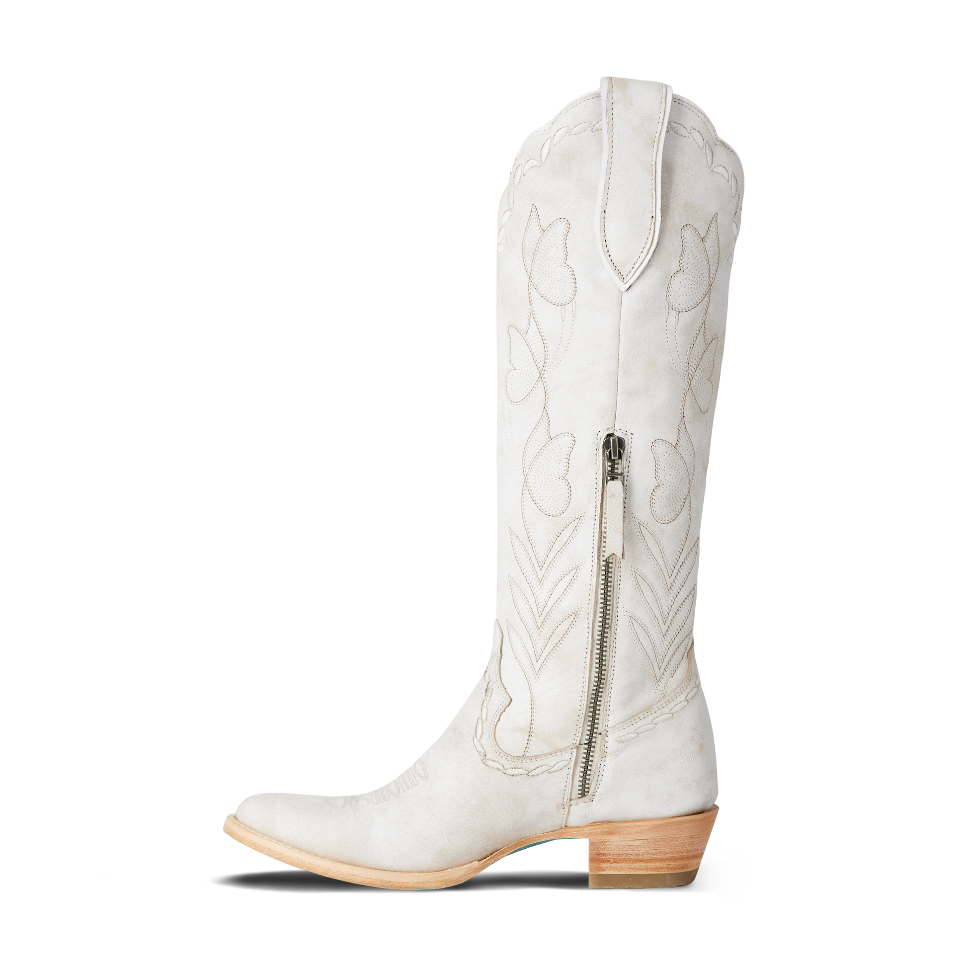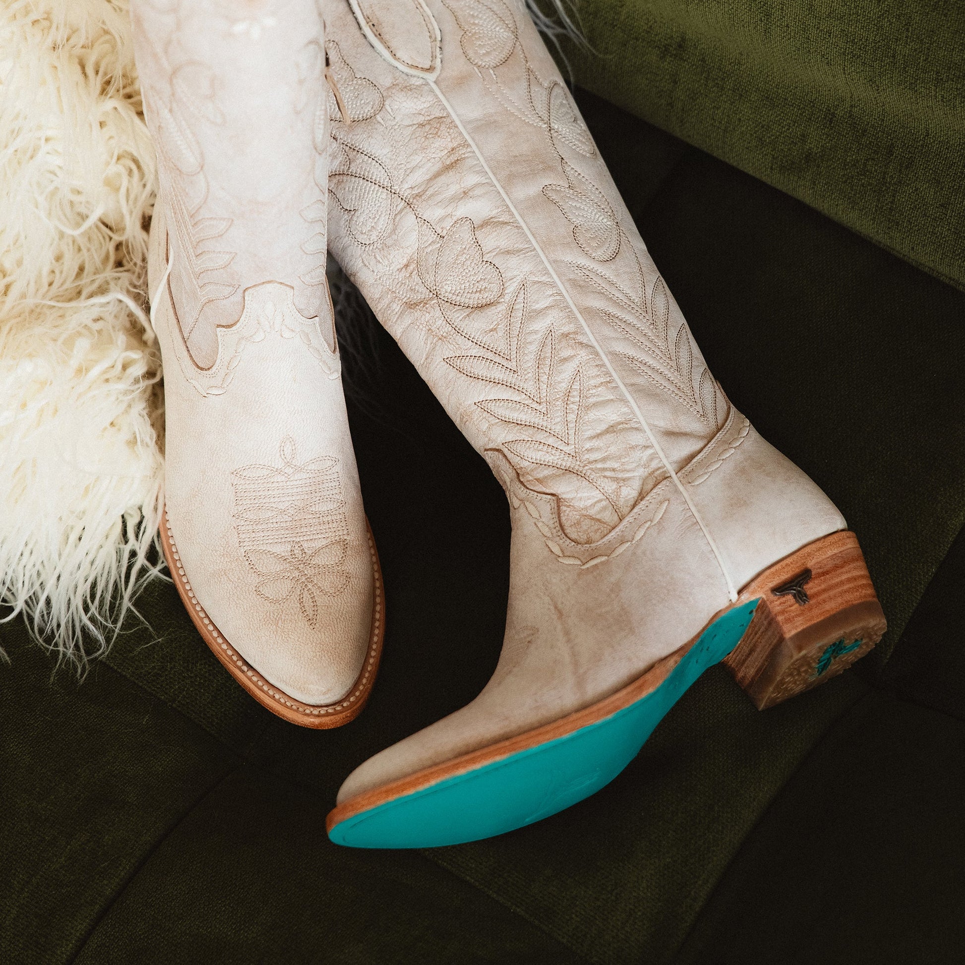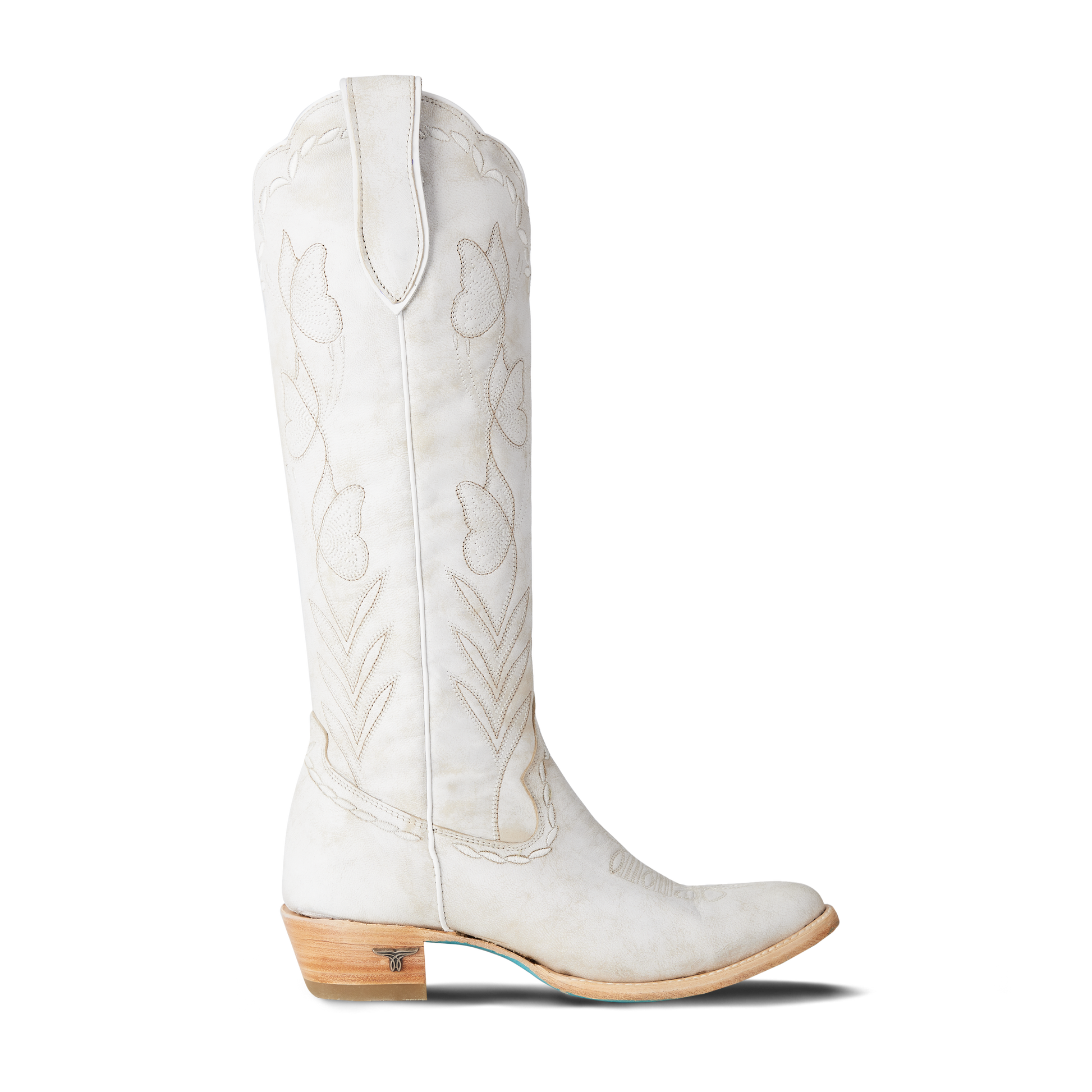 Crafted in luminous ceramic crackle leather, this boot features elegant scalloping, delicate butterfly stitching, and whimsical floral-inspired edging—each detail thoughtfully placed to create a truly special, one-of-a-kind design. Finished with Lane’s signature turquoise soles, Sweet Memories is as symbolic as it is stunning.