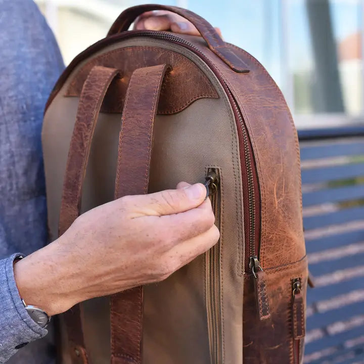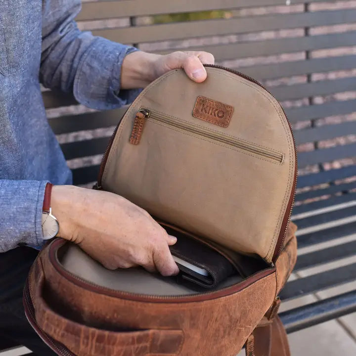 The Executive Backpack is designed with the professional in mind. Crafted out of luxurious leather, this stylish backpack features a secure pocket secured with an integrated locking zipper, perfect for safely storing valuables. Enjoy peace of mind while on the go.