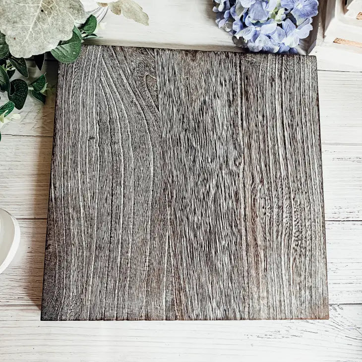 A gorgeous brown wooden piece that is hand white washed to further that rustic farmhouse style on the wood, which also gives it a gray undertone.